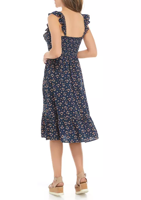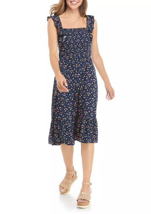 Reimagined by a feminine floral print, this midi dress from As U Wish is characterized by fluttery sleeves and depth-defining smocking.