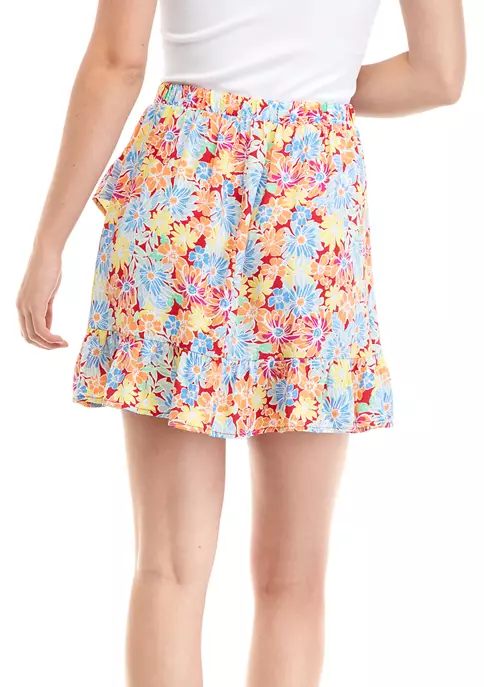Vibrantly printed in a floral design, this flirty ruffled skirt from As U Wish is great for pairing with solid tees and tanks.