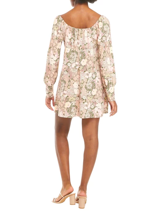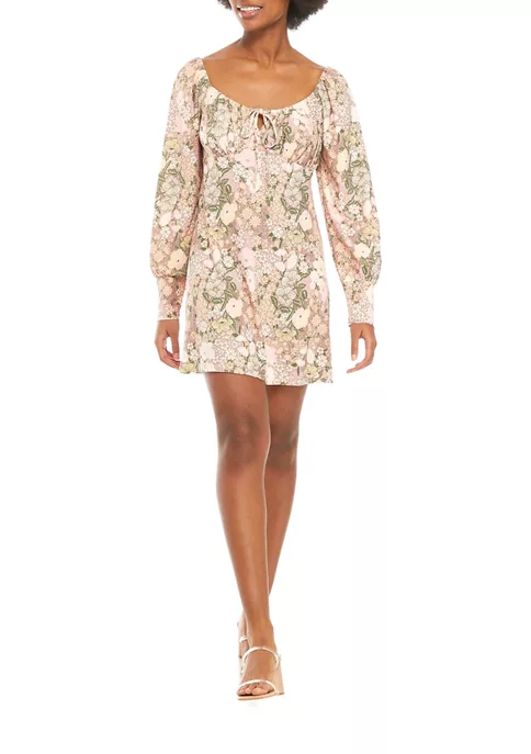 Covered in dainty florals, this As U Wish dress is feminized with poetic lantern sleeves and a tied neckline.