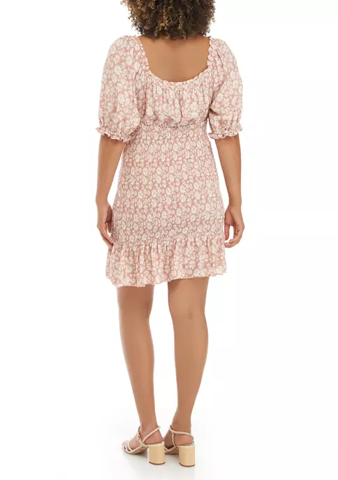 All-over smocking exaggerates the fit of this chic dress from As U Wish that’s covered in a delicate floral print and finished with dramatic puff sleeves.