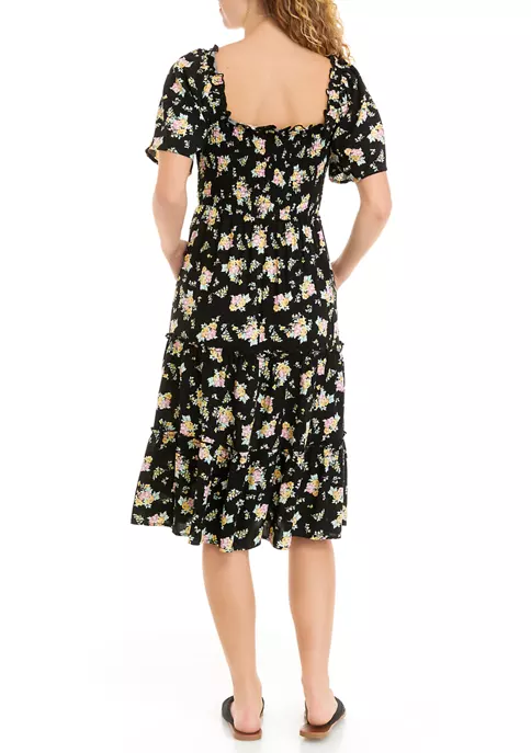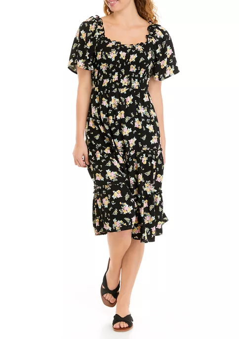 Feminine flutter sleeves add a playful touch to this smocked midi dress from As U Wish.