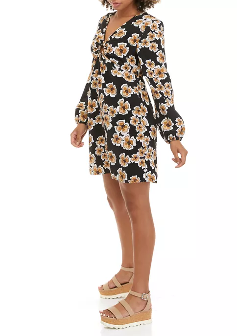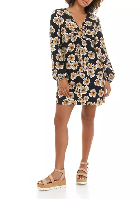 Colorful florals pop off of this pinafore dress by As U Wish, featured in a sleeveless silhouette that can be worn solo or layered over your favorite tee.