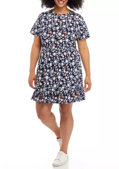 This essential babydoll dress from As U Wish is updated with a ruffled hem and delicate floral print.