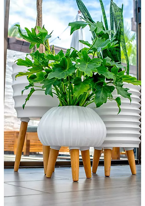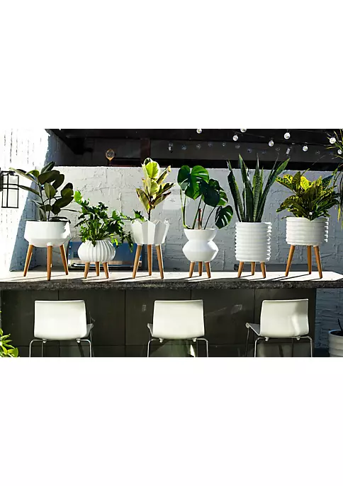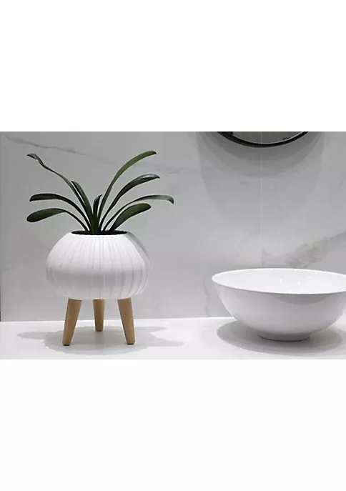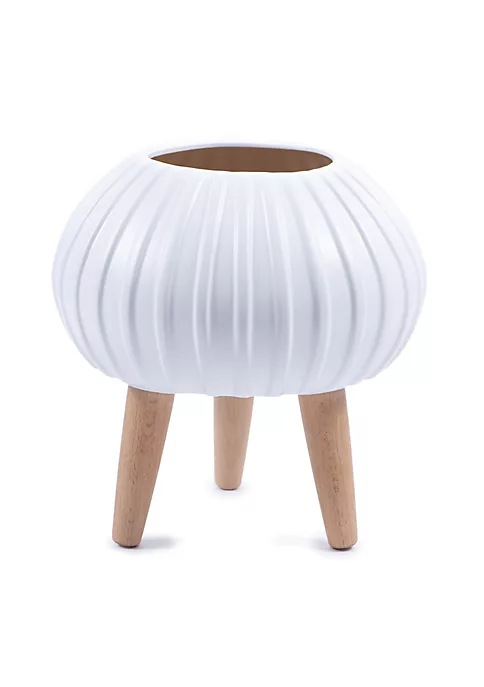 Hide+seek SUPPLY CO Winston Ceramic Planter w/beech wood legs-matte white
