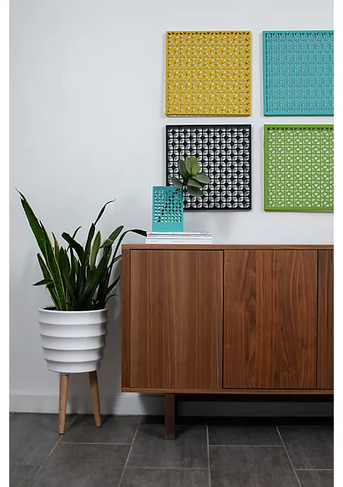 Hide+seek SUPPLY CO Breeze Block Metal Serving Tray Round-Lemon