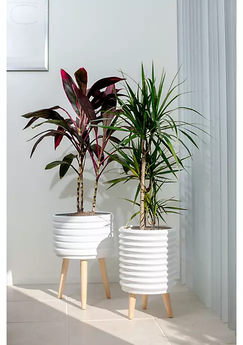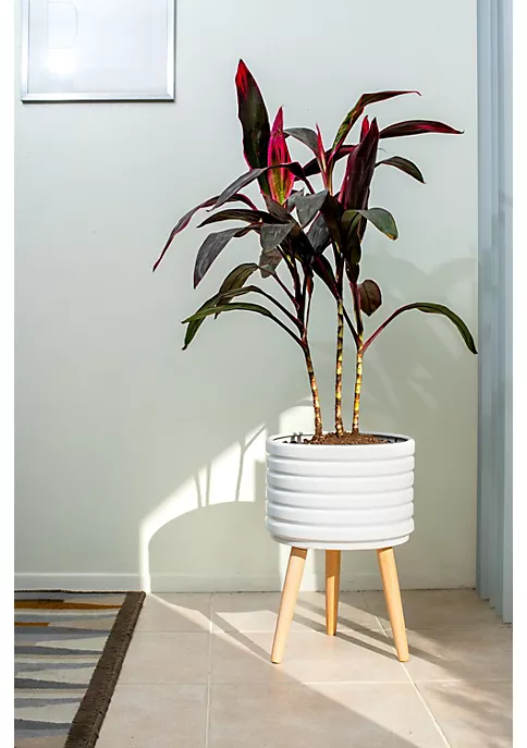 Hide+seek SUPPLY CO Maggie Ceramic Planter w/beech wood legs-matte white