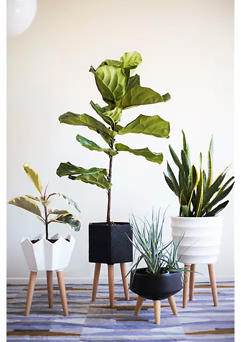 Hide+seek SUPPLY CO Paul Ceramic Planter w/beech wood legs-textured black