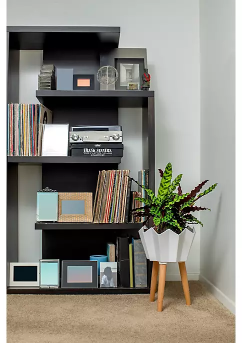 Hide+seek SUPPLY CO Groove Ceramic Planter w/beech wood legs-glossy white